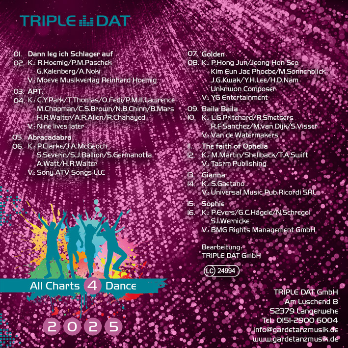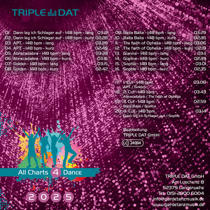 All Charts 4 Dance“ ist nach den Bedürfnissen des karnevalistischen Tanzsports produziert.